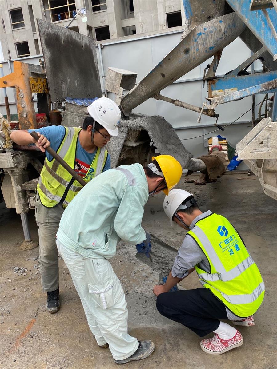 馬達(dá)聲、電鉆聲轟鳴,混凝土攪拌車、混凝土泵車、材料運輸板車、土方綠皮車來往穿梭,綁扎鋼筋、混凝土塌落度試驗、澆筑混凝土、升爬架前驗收等工作有條不紊進行,這是第四分公司融創(chuàng)江南林語項目的趕工現(xiàn)場。