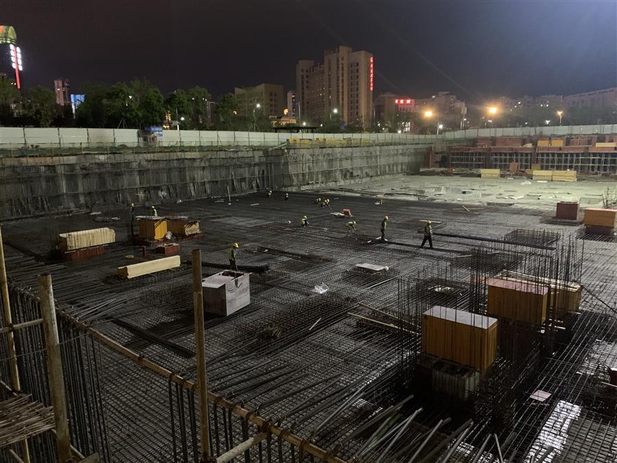 時(shí)至深夜,贛州市人民醫(yī)院新院職工交流房項(xiàng)目工作人員依舊奮戰(zhàn)在施工現(xiàn)場,現(xiàn)場機(jī)械轟鳴聲、焊接切割聲交織在一起,一片熱火朝天的大干景象。目前,130余名施工作業(yè)人員全面鋪開各個(gè)工作面,底板防水施工、承臺鋼筋綁扎、磚胎膜砌筑、樁頭破除、地下室頂板架子搭設(shè)和模板安裝等工作都在有序推進(jìn),各班組都在按照計(jì)劃加班加點(diǎn)推進(jìn)項(xiàng)目建設(shè)進(jìn)度。