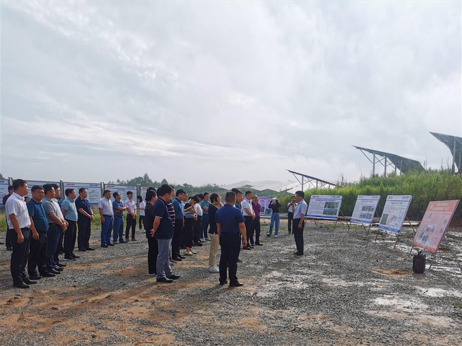 7月6日,寧明縣重大項目年中走會考察組到冶建公司基礎(chǔ)分公司承建的寧明縣寨安光伏項目光伏區(qū)建筑與安裝工程項目考察。寧明縣委書記王耀雷、縣長孫金水及縣領(lǐng)導(dǎo)班子成員參加。