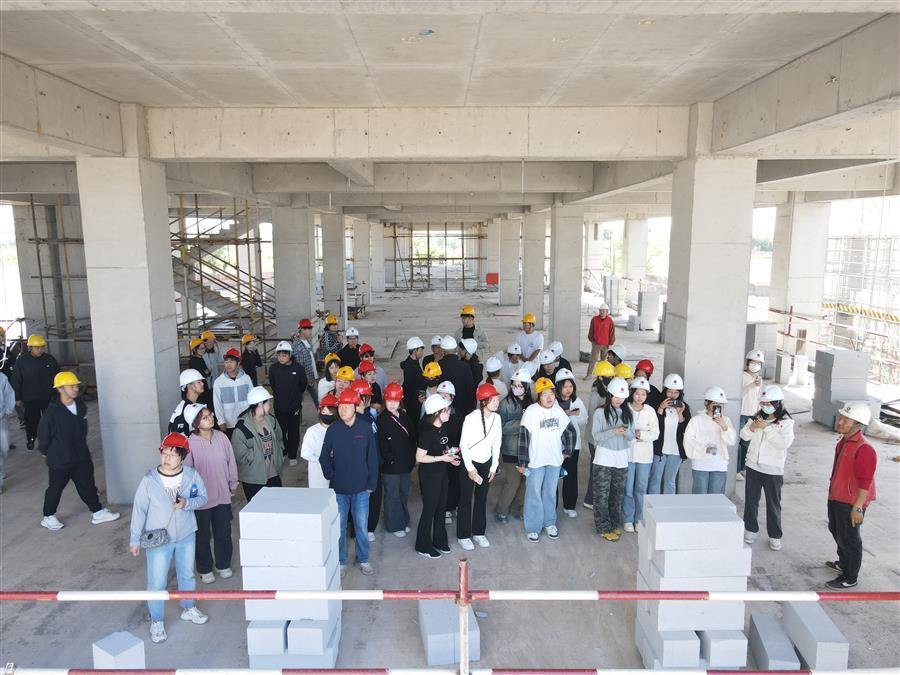 在參觀(guān)前,項(xiàng)目負(fù)責(zé)人簡(jiǎn)要介紹了冶建公司發(fā)展歷程和項(xiàng)目概況,詳細(xì)講解了施工現(xiàn)場(chǎng)的各項(xiàng)安全注意事項(xiàng)。之后,所有人員佩戴好安全帽有序進(jìn)入施工現(xiàn)場(chǎng)進(jìn)行參觀(guān)。觀(guān)摩學(xué)習(xí)過(guò)程中,項(xiàng)目管理人員對(duì)項(xiàng)目正在進(jìn)行的二次結(jié)構(gòu)砌筑、型鋼混凝土結(jié)構(gòu)、盤(pán)扣架以及鋼筋綁扎等工序進(jìn)行了生動(dòng)形象地講解,并就工程的重點(diǎn)、難點(diǎn)問(wèn)題和解決方法開(kāi)展了現(xiàn)場(chǎng)答疑交流,將在建項(xiàng)目施工現(xiàn)場(chǎng)變?yōu)閷?shí)踐課堂,幫助學(xué)生們更好地把理論知識(shí)與實(shí)踐相結(jié)合,推動(dòng)參觀(guān)學(xué)習(xí)走深走實(shí)。