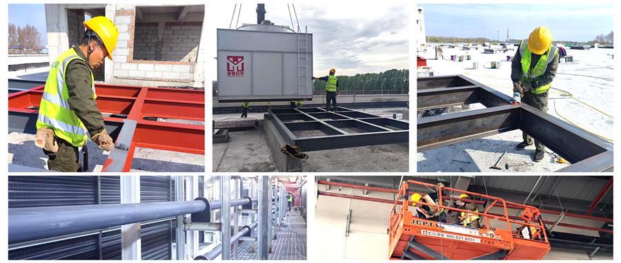 冷風(fēng)機(jī)設(shè)備入場后,項(xiàng)目部立即有序開展焊接吊風(fēng)機(jī)平臺工作,完成平臺焊接后,項(xiàng)目部合理安排進(jìn)度計劃,實(shí)施進(jìn)度管理。經(jīng)過項(xiàng)目部全體人員的連續(xù)奮戰(zhàn),項(xiàng)目4號庫12臺冷風(fēng)機(jī)已順利安裝到位,管道安裝完成80%;1號庫完成4臺蒸發(fā)式冷凝器安裝工作,下一步進(jìn)行管道安裝。
