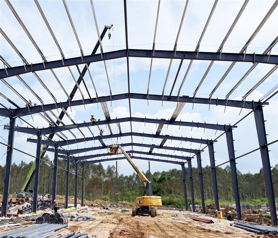 項目開工以來,為加快建設進度,項目部嚴格按照公司相關要求進行施工管理,克服重重困難,制定科學的施工組織計劃,由專員監(jiān)督指揮施工。該項目占地面積約2萬平方米,總建筑面積1.2萬平方米,主要建設一棟鋼架結(jié)構標準廠房,配套建設道路、圍墻、綠化、電氣、消防及給排水等設施。目前已完成基礎承臺及地腳螺栓的預埋,鋼結(jié)構安裝完成40%,配套建設施工內(nèi)容完成30%。