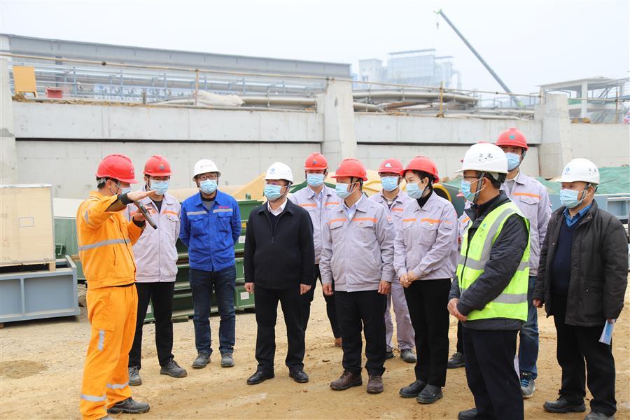 覃振華、楊義等領導在項目管理人員的陪同下前往項目施工現場,深入了解各項工作推進情況,詳細聽取項目施工進度和節(jié)點工期安排等工作匯報,對項目各項工作給予充分肯定。