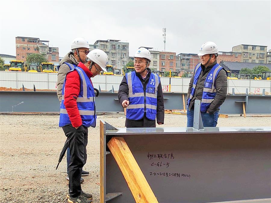 廖立波深入項目施工現(xiàn)場,詳細了解項目施工進度、質(zhì)量安全管理、鋼結(jié)構(gòu)安裝、機械材料設(shè)備等情況。廖立波要求,項目部要統(tǒng)籌做好施工計劃,根據(jù)整體工期安排,合理分解階段性目標,精準設(shè)計施工方案,掛圖作戰(zhàn),提高整體施工效率;要毫不松懈抓好安全生產(chǎn),健全安全管理體系,常態(tài)化開展安全警示教育,提高安全管理水平。廖立波強調(diào),要全面加強質(zhì)量管理,認真做好創(chuàng)優(yōu)前期工作,落實質(zhì)量管理責任,將質(zhì)量管控貫穿項目建設(shè)全過程;要堅持樣板引路,嚴格落實標準規(guī)范,抓好基礎(chǔ)技術(shù)管理、原材料質(zhì)量管控、項目檢驗和驗收,探索創(chuàng)新施工工藝,提高施工水平,確保一次成優(yōu),保障工程質(zhì)量整體過硬。