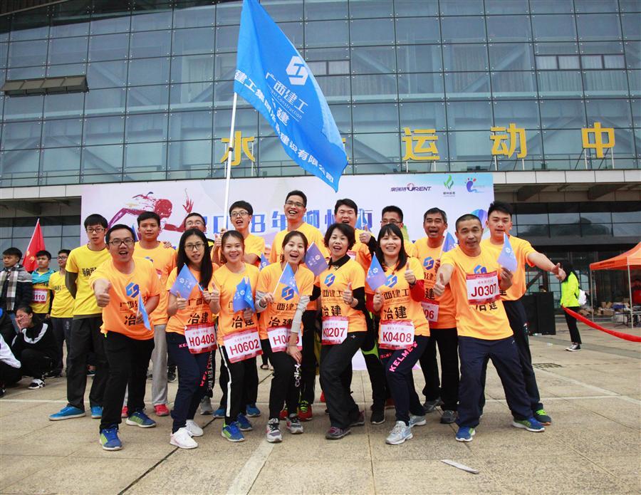 跑進(jìn)2018,沖向勝利目標(biāo)!60年鐵軍精神,看冶建崢嶸出擊!2018年1月1日,在公司工會的組織下,我司職工統(tǒng)一身著明黃色上衣,揮舞著冶建旗幟,雄赳赳氣昂昂來到柳州市靜蘭水上運(yùn)動中心參加2018柳州市“邁向新年7+3”奔跑活動暨2018年全市元旦長跑比賽。