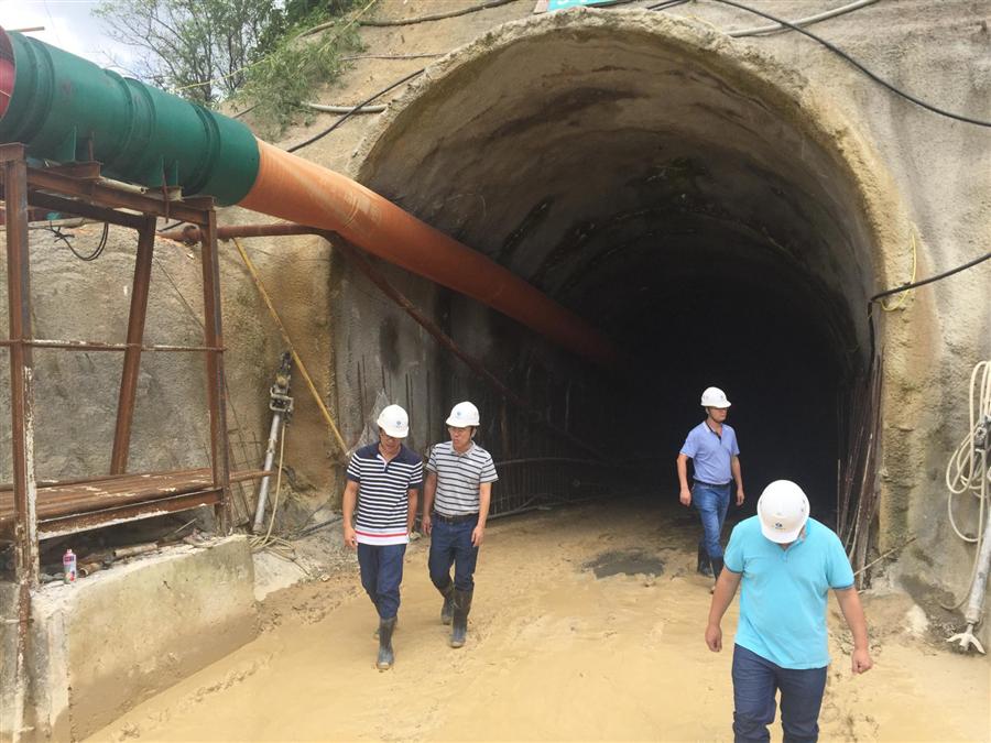 廖副總一行首先實(shí)地察看了隧洞進(jìn)口、3#支洞、出洞口等項(xiàng)目的施工進(jìn)展情況,并進(jìn)洞仔細(xì)觀察和了解掌子面的圍巖地質(zhì)條件與開挖情況,認(rèn)真聽取項(xiàng)目負(fù)責(zé)人關(guān)于當(dāng)前工程建設(shè)的有關(guān)匯報(bào)。