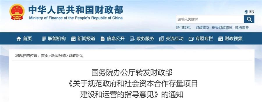 近日,國(guó)務(wù)院辦公廳轉(zhuǎn)發(fā)財(cái)政部《關(guān)于規(guī)范政府和社會(huì)資本合作存量項(xiàng)目建設(shè)和運(yùn)營(yíng)的指導(dǎo)意見(jiàn)》。作為我國(guó)基礎(chǔ)設(shè)施建設(shè)與公共服務(wù)領(lǐng)域的重要模式,政府和社會(huì)資本合作(PPP)項(xiàng)目已形成超10萬(wàn)億元存量規(guī)模。隨著《指導(dǎo)意見(jiàn)》的落地,存量PPP項(xiàng)目迎來(lái)系統(tǒng)性規(guī)范方案,標(biāo)志著在經(jīng)歷機(jī)制轉(zhuǎn)型后,PPP模式進(jìn)入存量與增量協(xié)同發(fā)展的新階段。