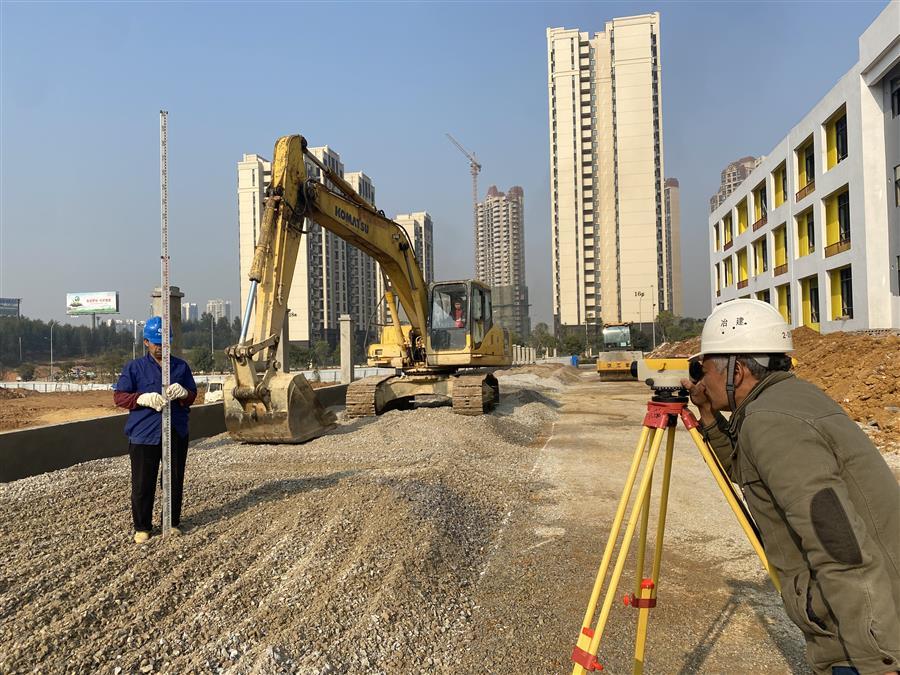 很快,他的心情平復下來,依舊像往常一樣,穿好工作裝、戴好安全帽走進柳州市陽和第三幼兒園的施工現(xiàn)場,開始忙碌的一天,放線、測量……