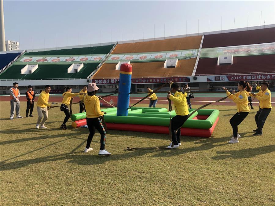 公司代表隊(duì)首先參加的是迷宮逃脫,眾人拾材火焰高,在8名隊(duì)員的合力協(xié)作下,隊(duì)員走位并協(xié)同快速地將灌有水的大型鉛筆道具拉出了迷宮。