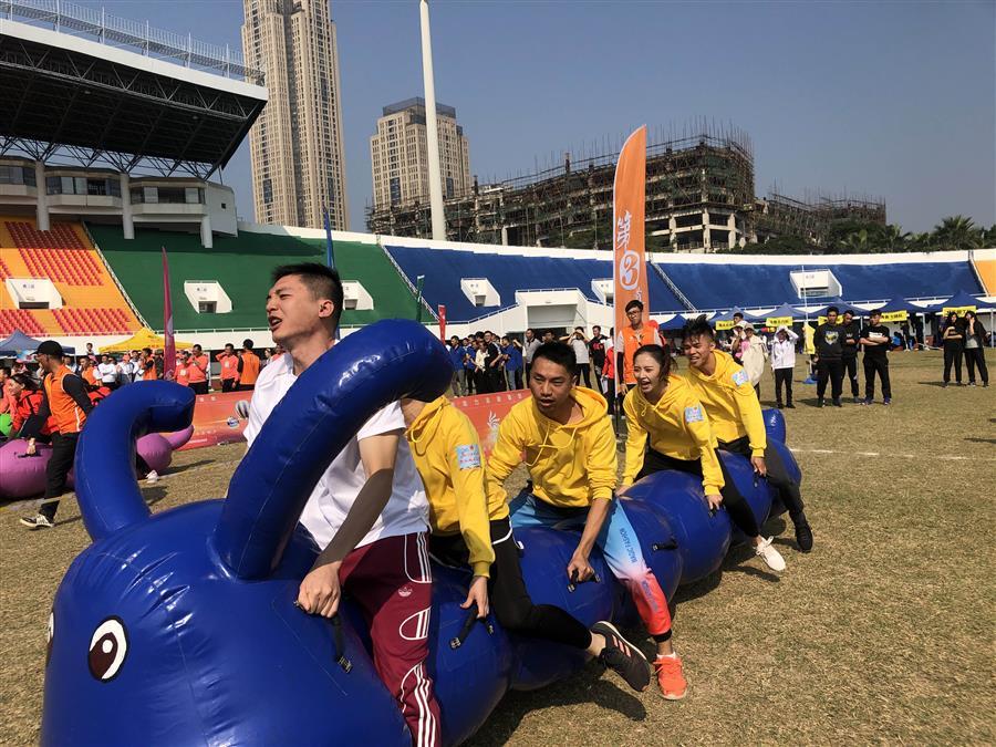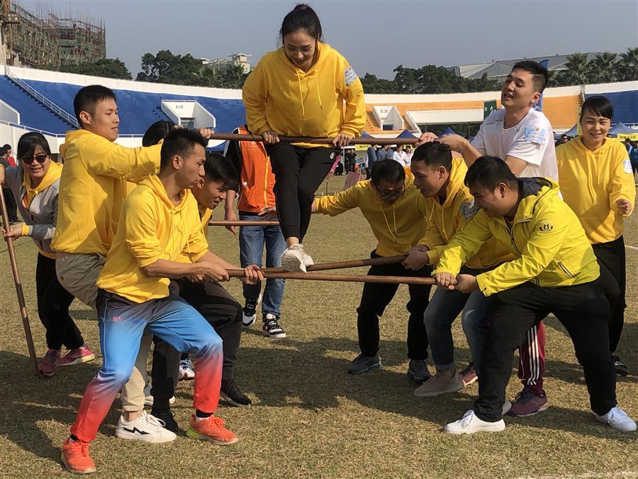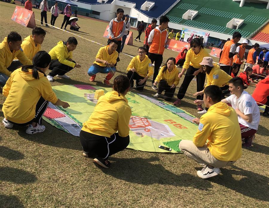 此次趣味運(yùn)動會由柳州市總工會組織,活動共為五個項(xiàng)目分別為迷宮逃脫、步步為贏、毛毛蟲競賽、合力建塔、趣味投籃。